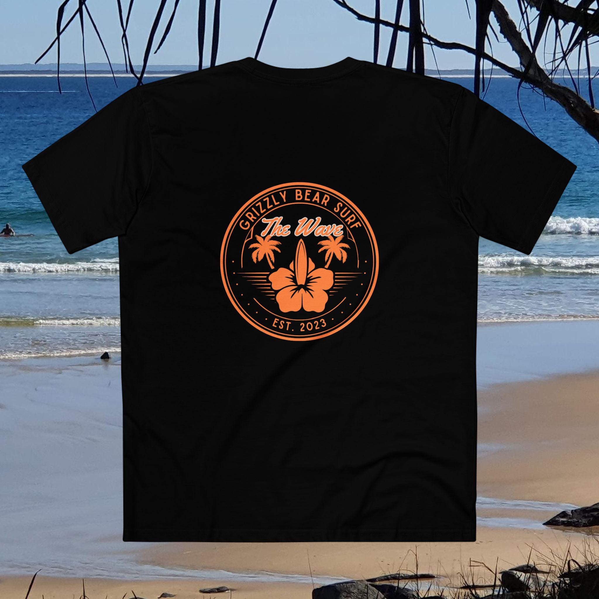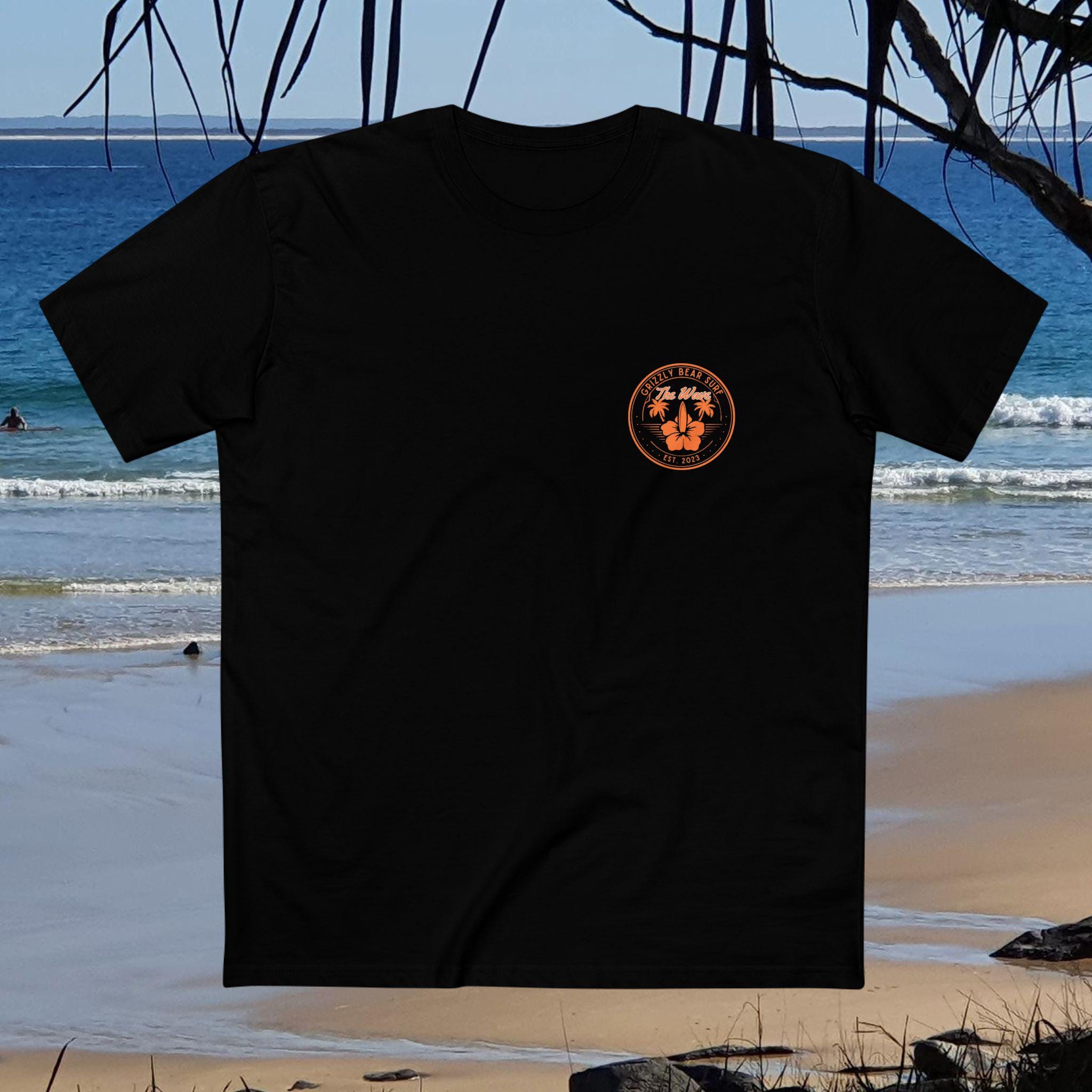 Ride the waves in style with the Gold Coast Hibiscus and Waves Tee by Grizzly Bear Surf Tee. This new epic classic and simple design that's perfect for surf enthusiasts. Whether you're aiming to make a statement and stand out in the lineup or prefer to effortlessly blend in with coastal style, this tee has got you covered. Designed and developed in the heart of Australia, it embodies the no-nonsense surf culture we all know and love.