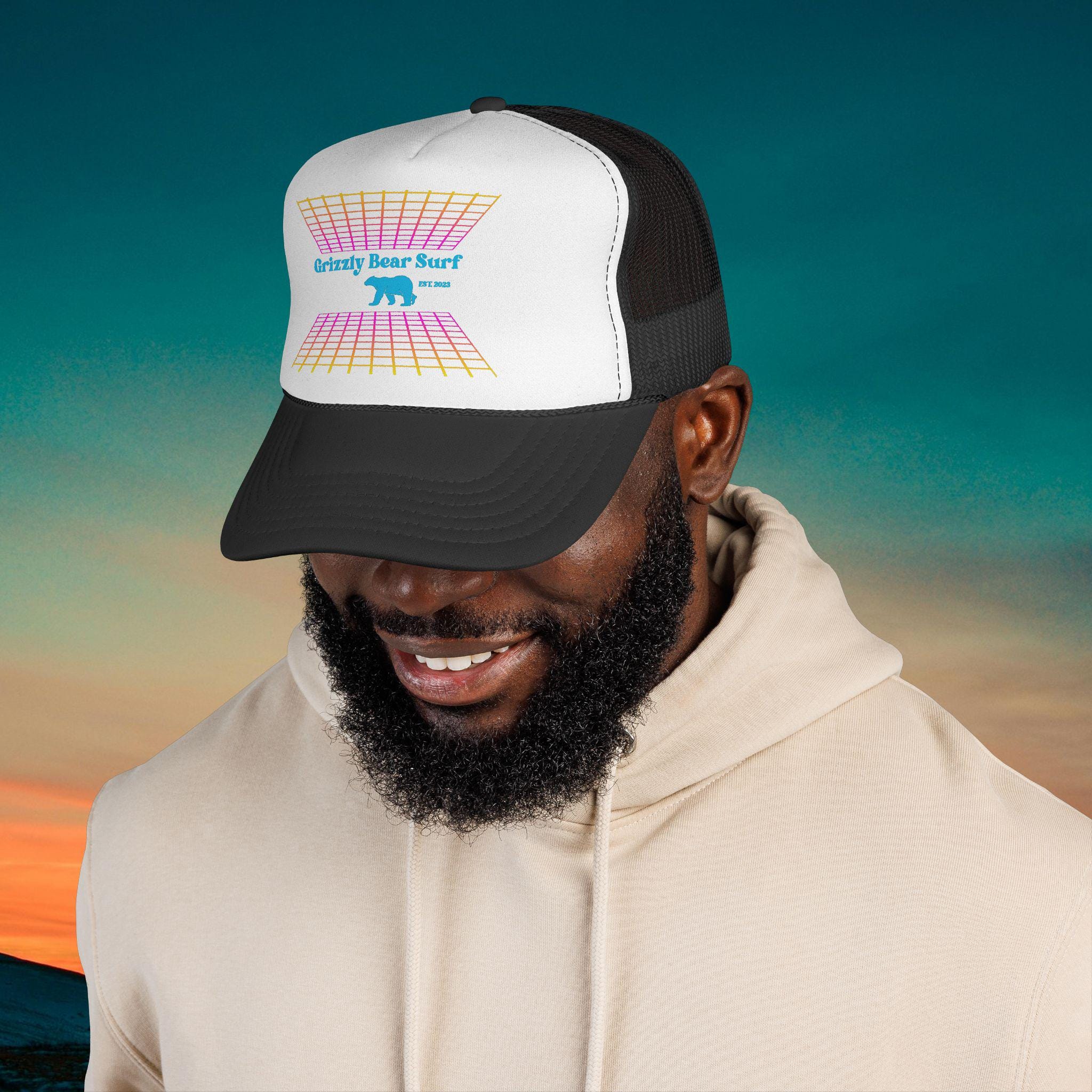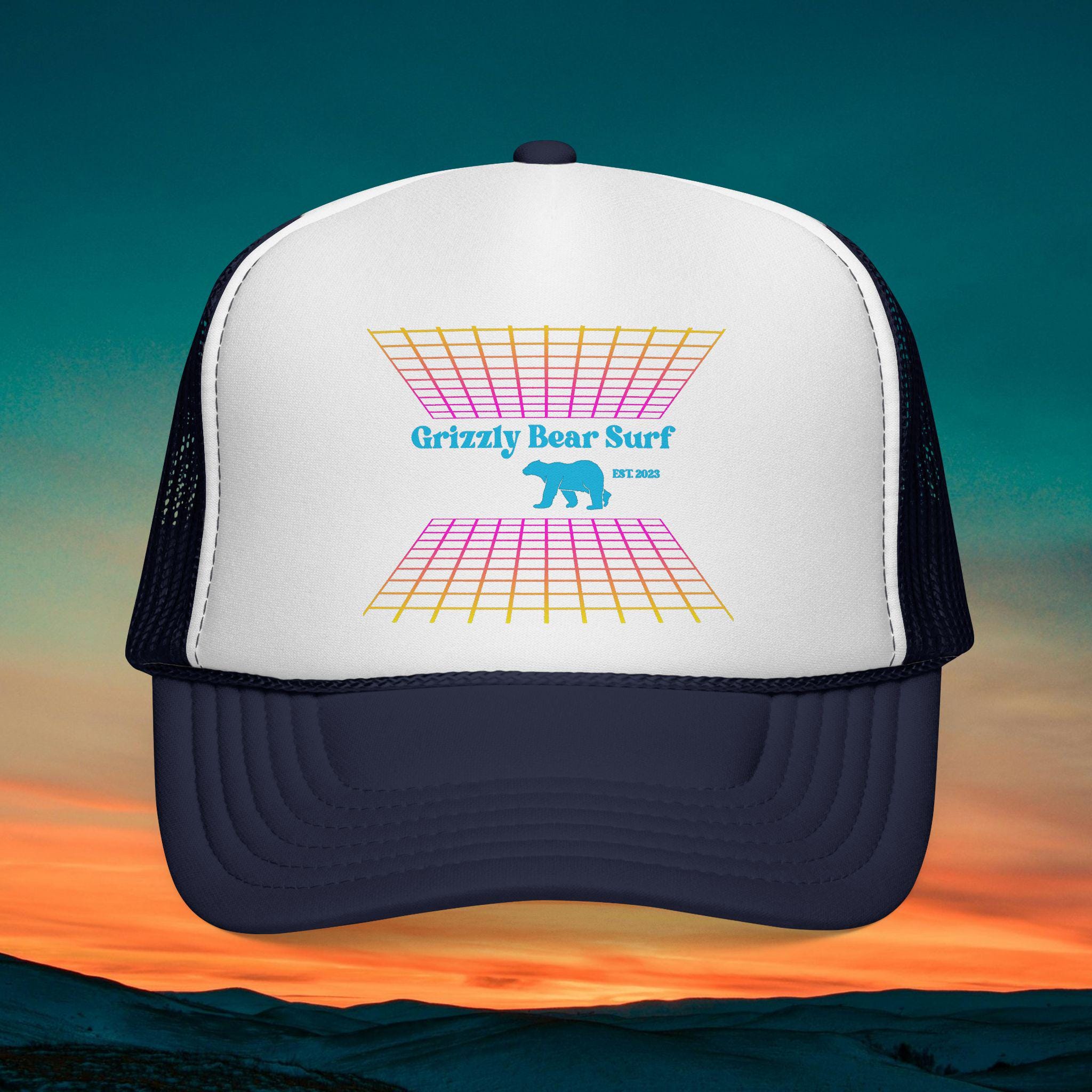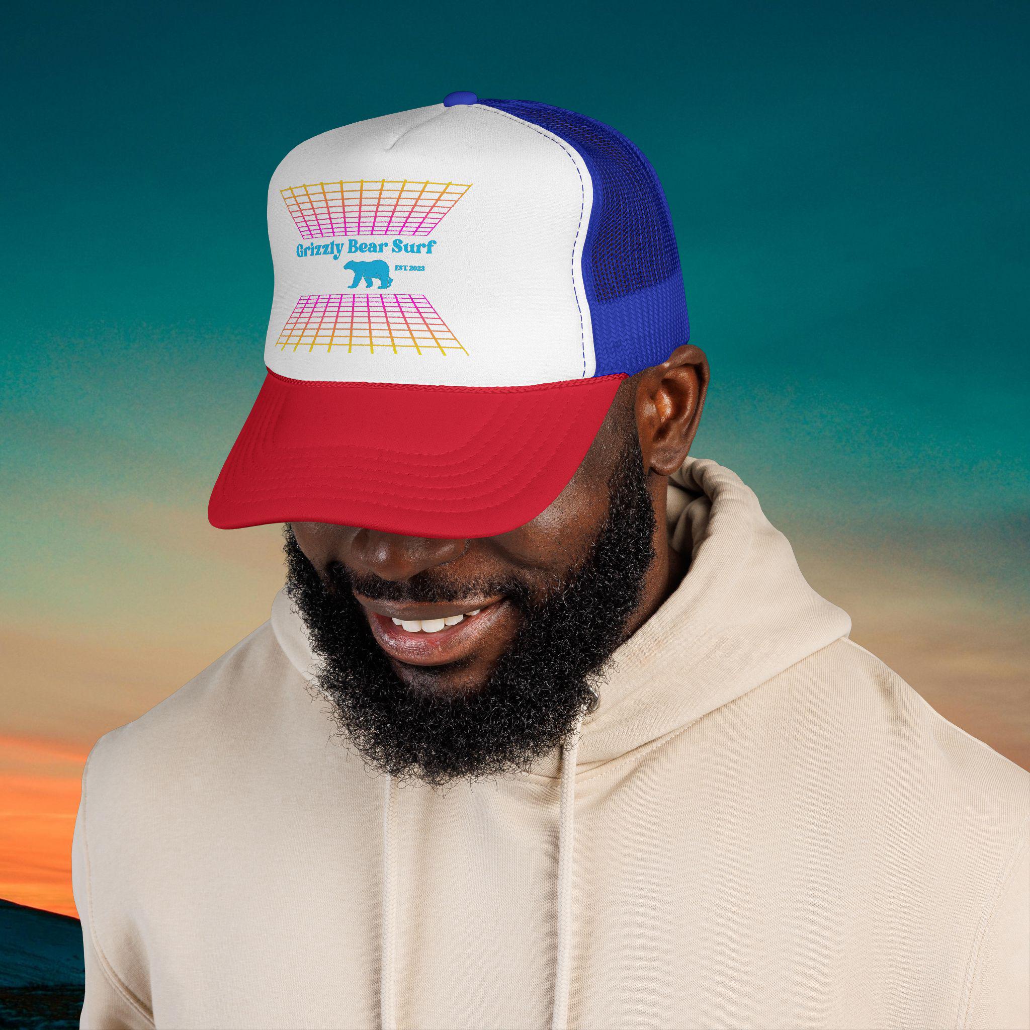 The Retro Gamer Trucker Cap by Grizzly Bear Surf offers a nostalgic nod to gaming culture while keeping the same surf-inspired vibe.