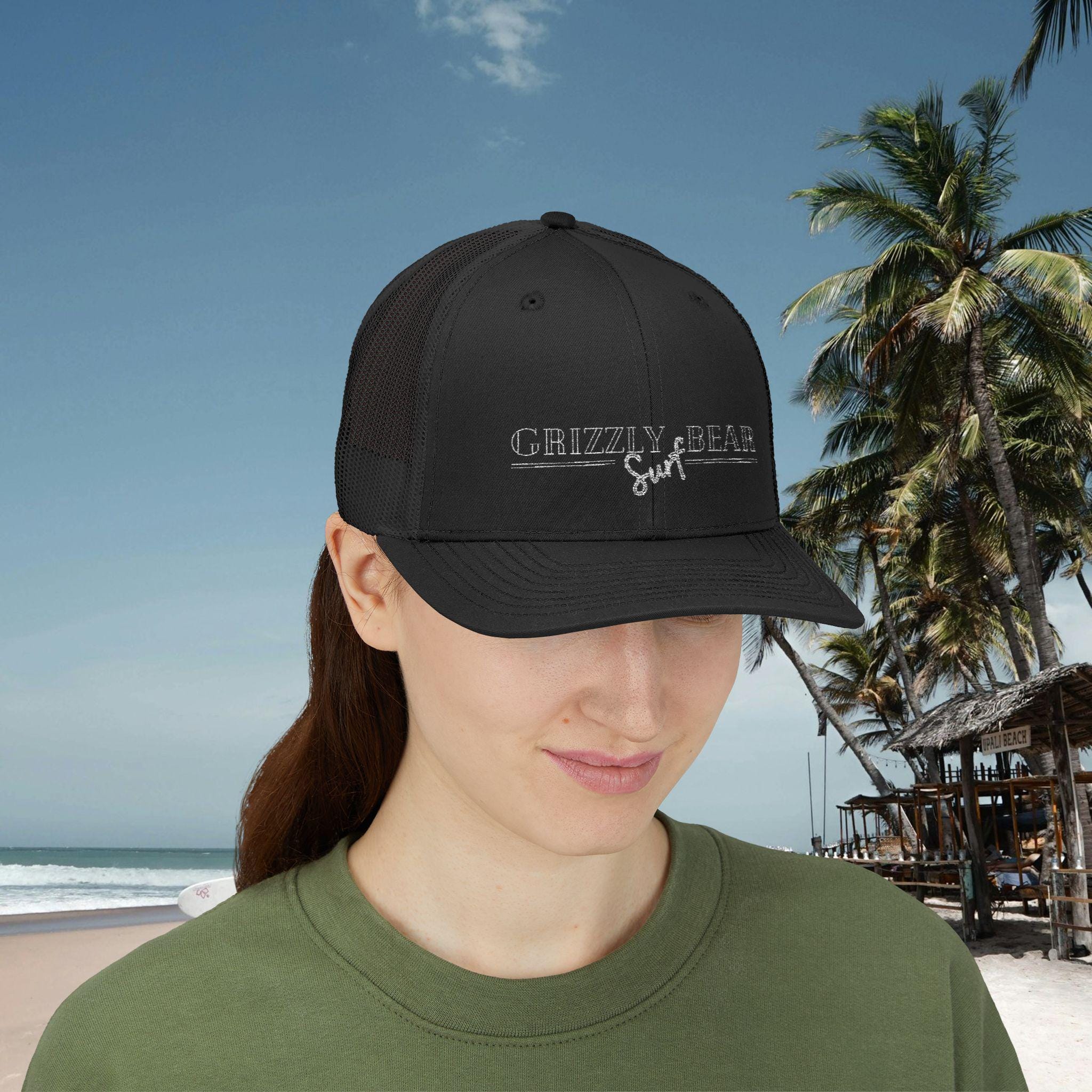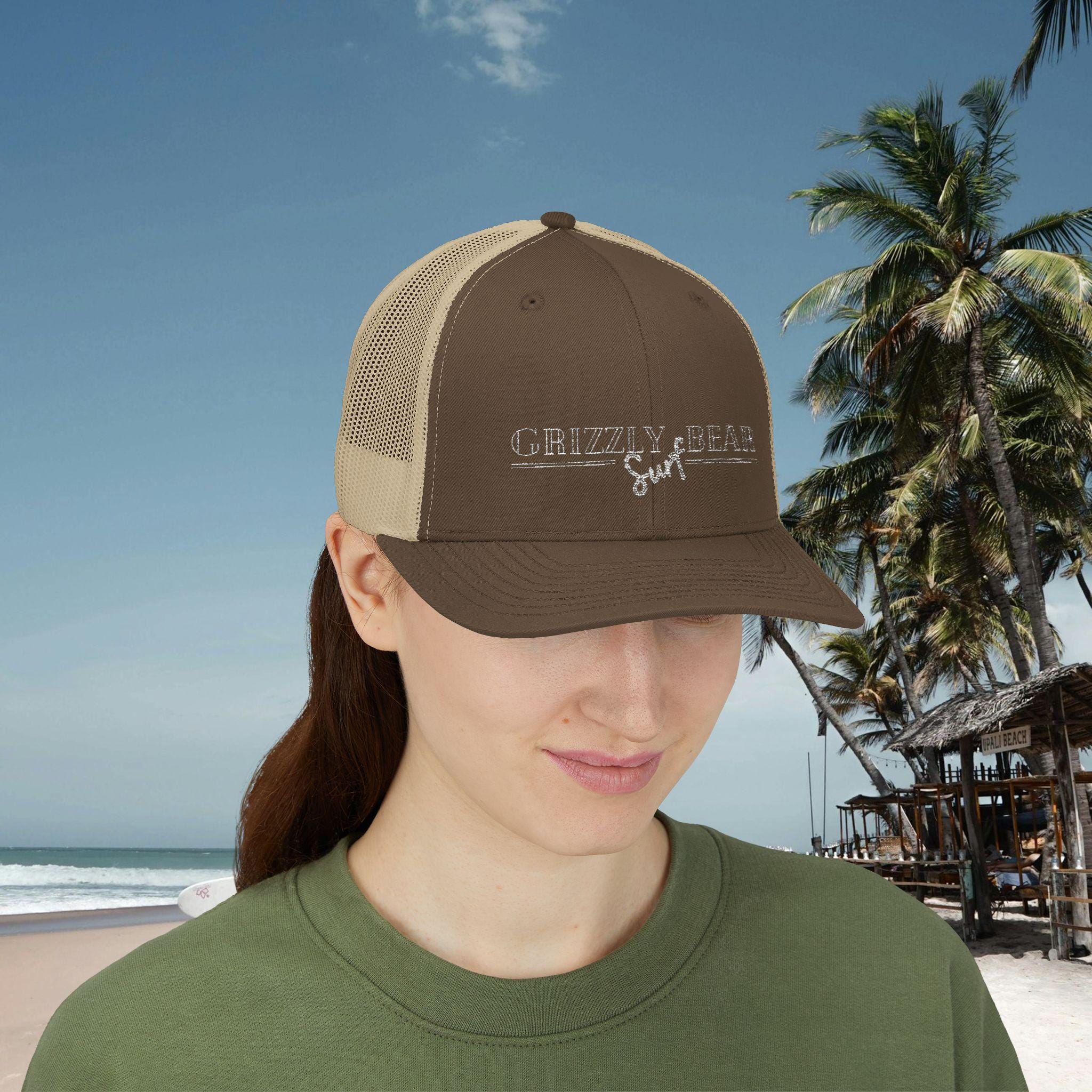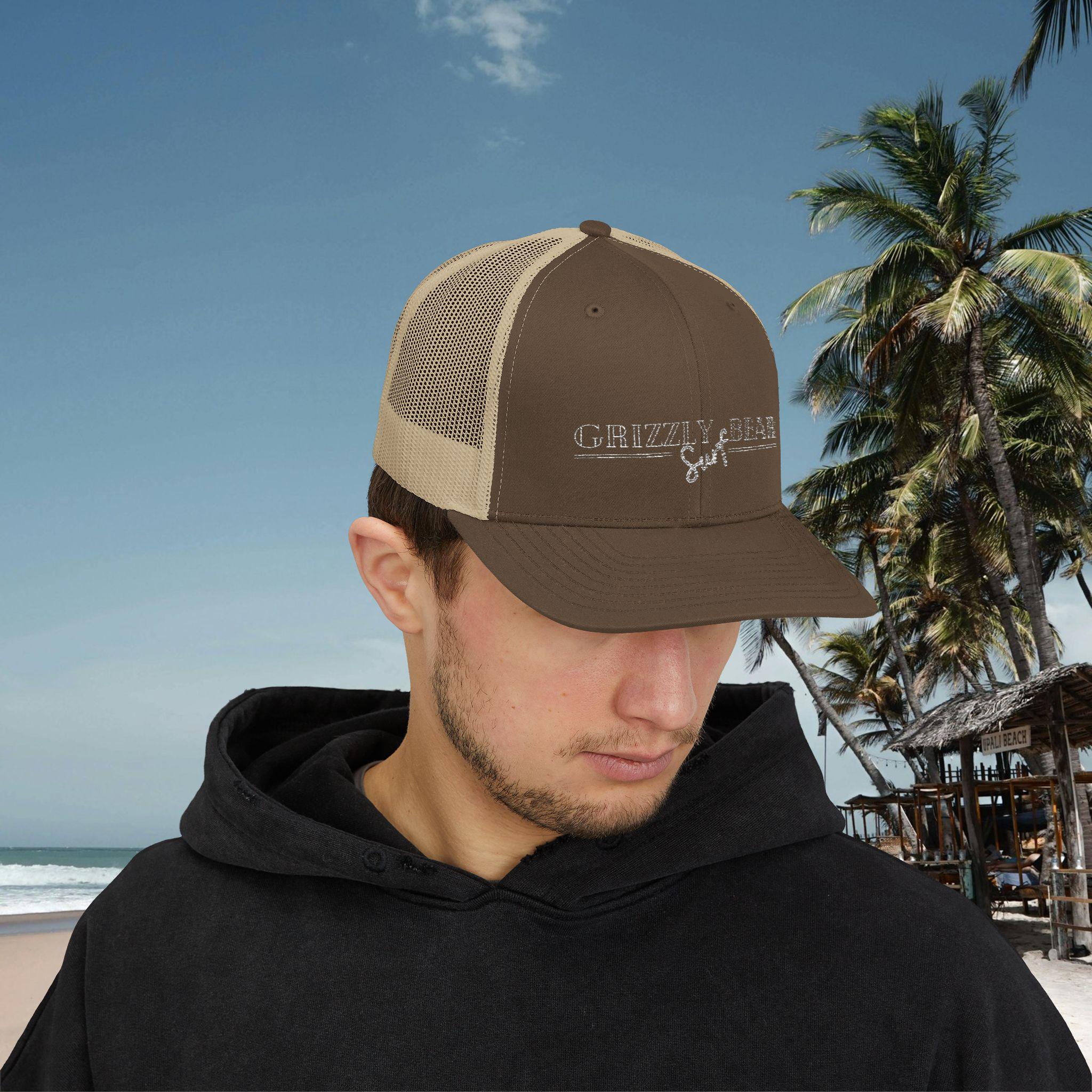 Introducing our stylish Grizzly Bear Surf by Name Snapback Trucker Cap, perfect for any casual occasion!