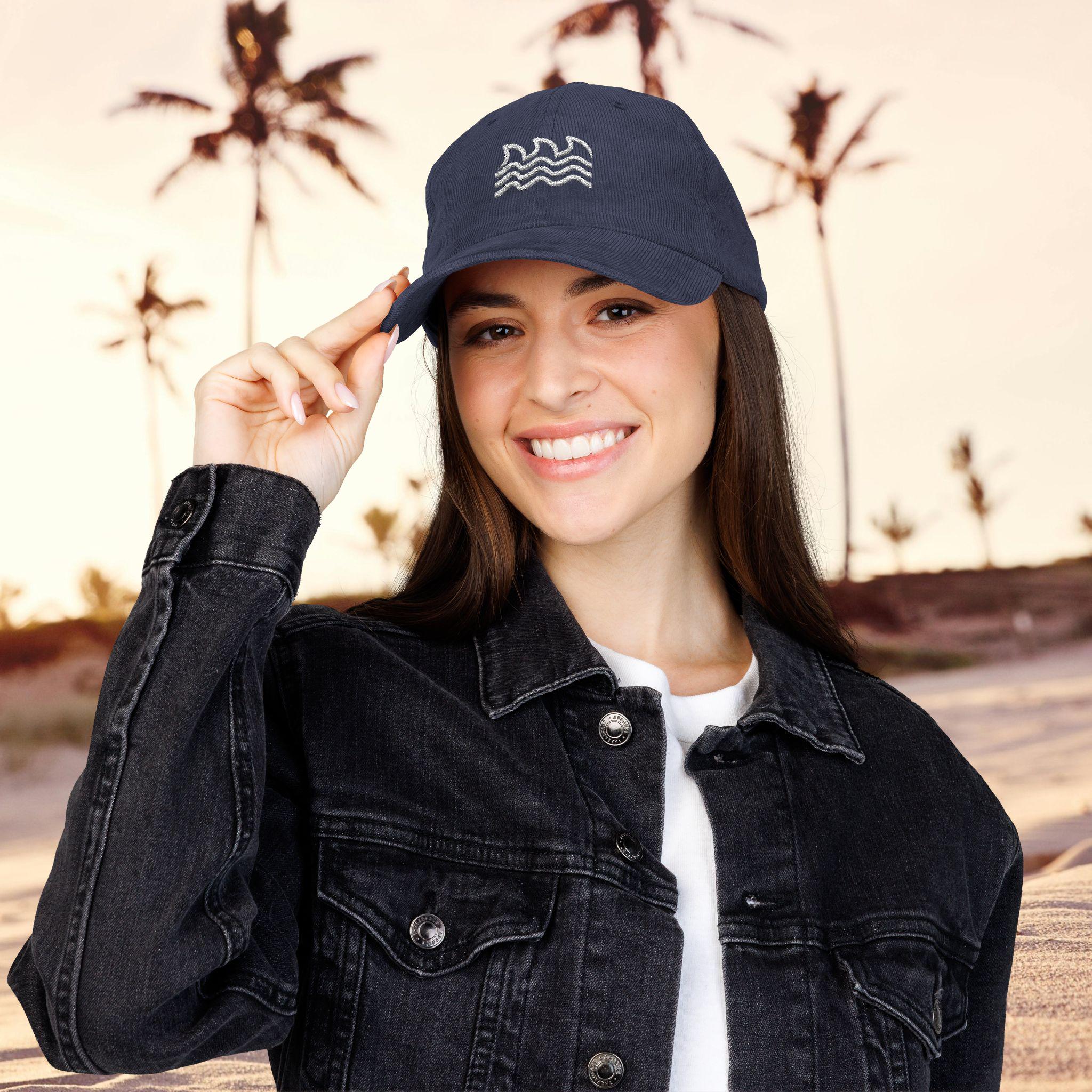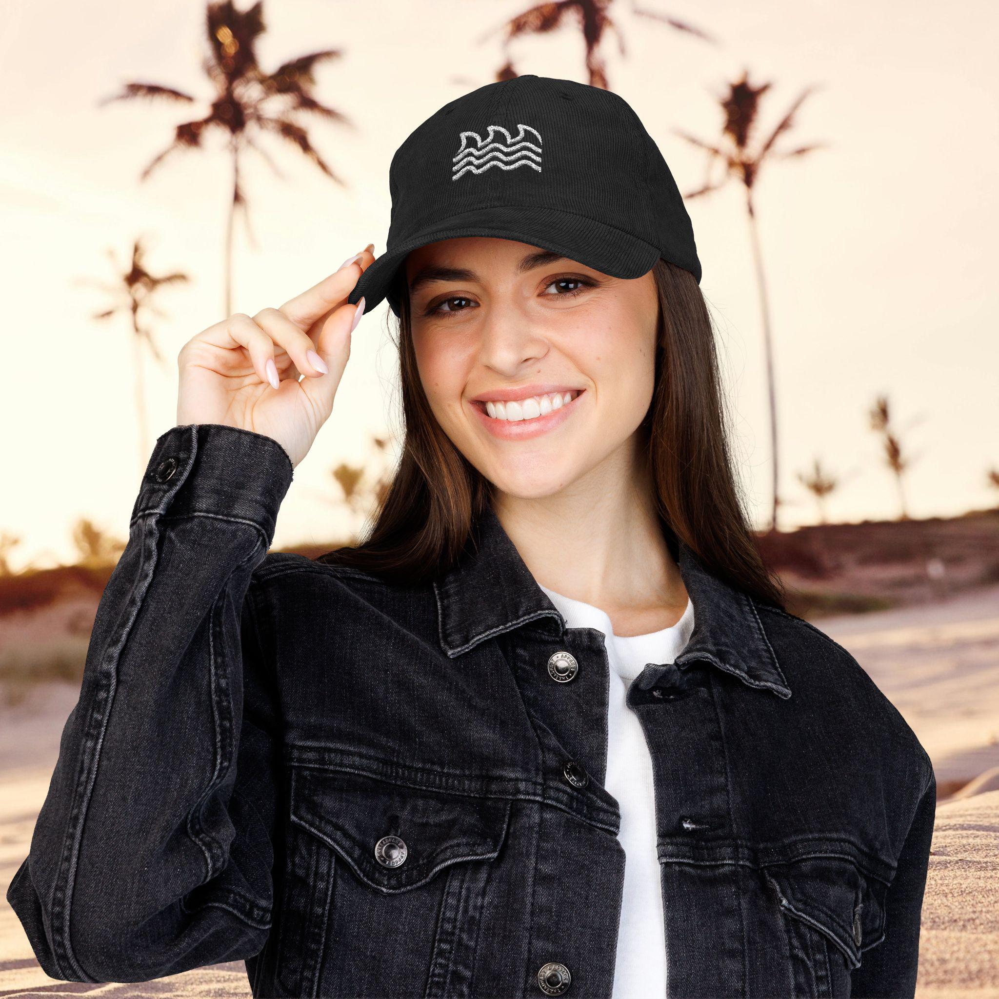A worn-in corduroy cap that carries a quiet, coastal energy. The soft ridged fabric and low-profile crown sit easily on your head, like a memory of a morning surf or a late-afternoon beach walk. Clean, minimal embroidery hints at rolling waves without shouting for attention — it’s for someone who keeps the good vibes subtle.