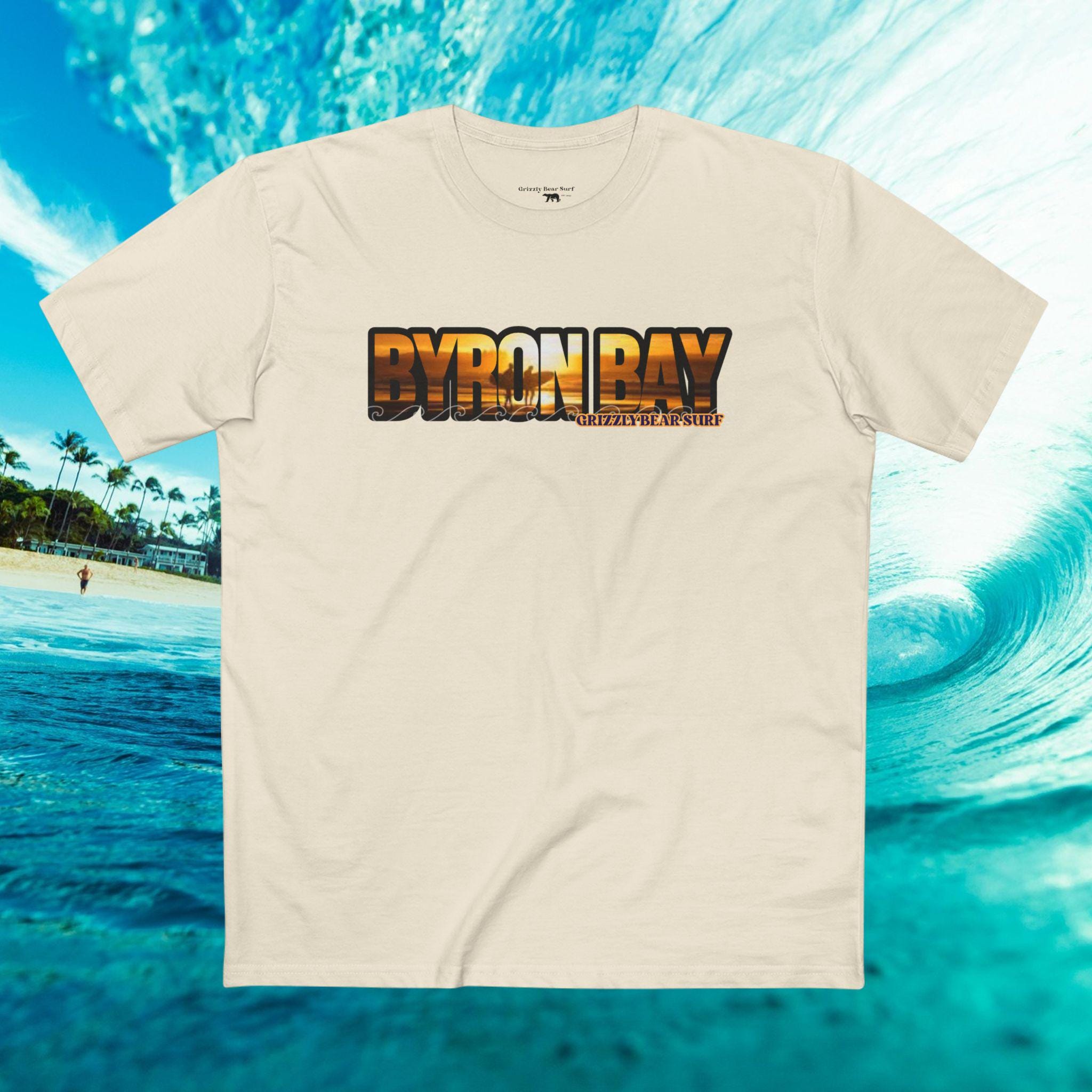 The Byron Bay Sunset Tee wraps you in the slow, golden hush of an Australian coastline. Imagine stepping onto warm sand as the sky softens into peach and lavender—this tee carries that quiet, spacious feeling with a subtle coastal print that reads like a memory.