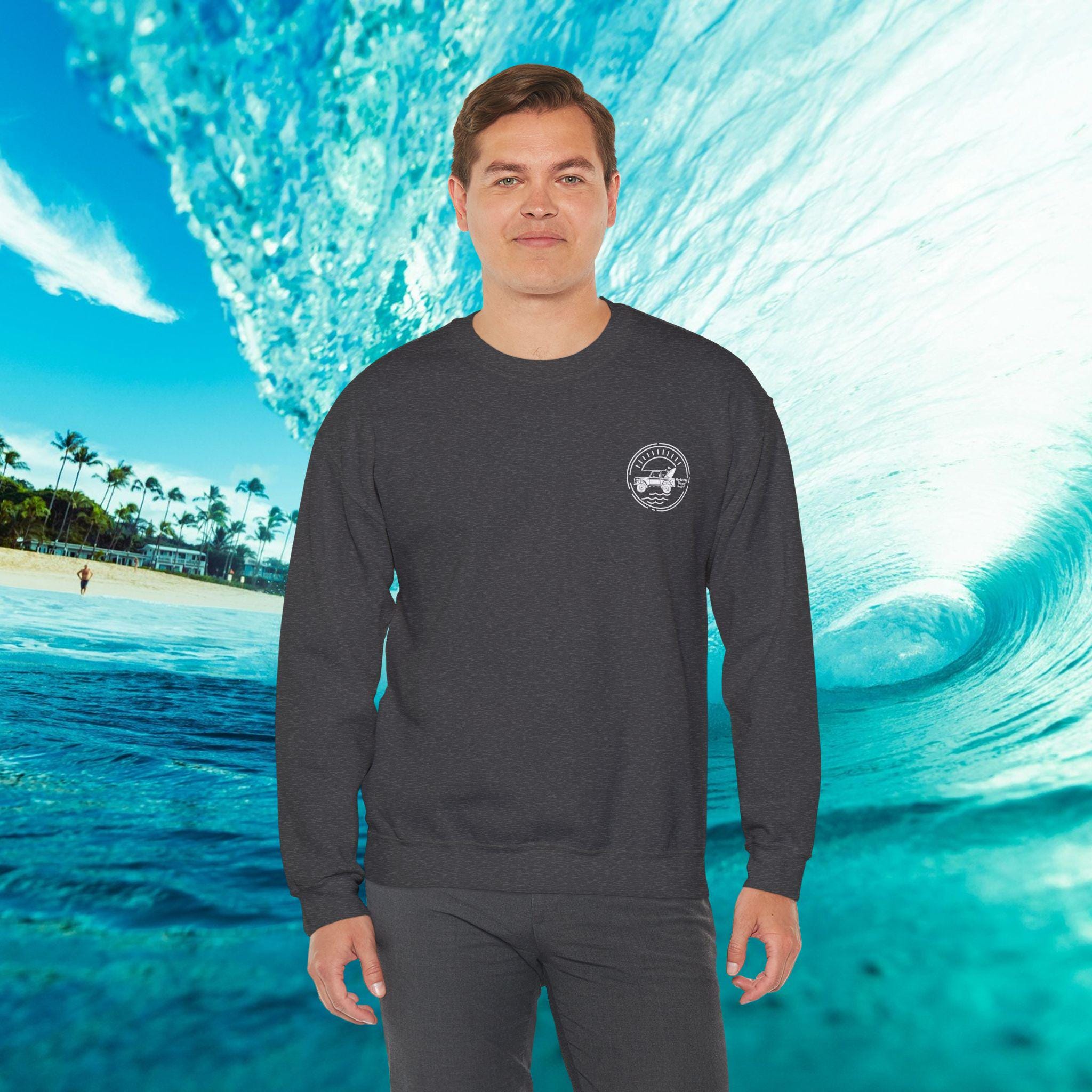 This crewneck sweatshirt carries the restless joy of a day spent chasing waves in an open-top Jeep. Soft, slightly heavy fabric wraps you like a coastal breeze while embroidered surf-inspired accents add texture and character. Wear it on slow mornings packing boards into the back, at dusk watching the swell settle, or anytime you want a little salt‑air attitude in your rotation. The design’s stitched details give a handcrafted feel—like a well-loved road trip memento—while the dependable construction stands up to weekends spent on the coast. It’s the kind of sweatshirt that feels lived-in from the first wear and keeps earning memories with each outing.