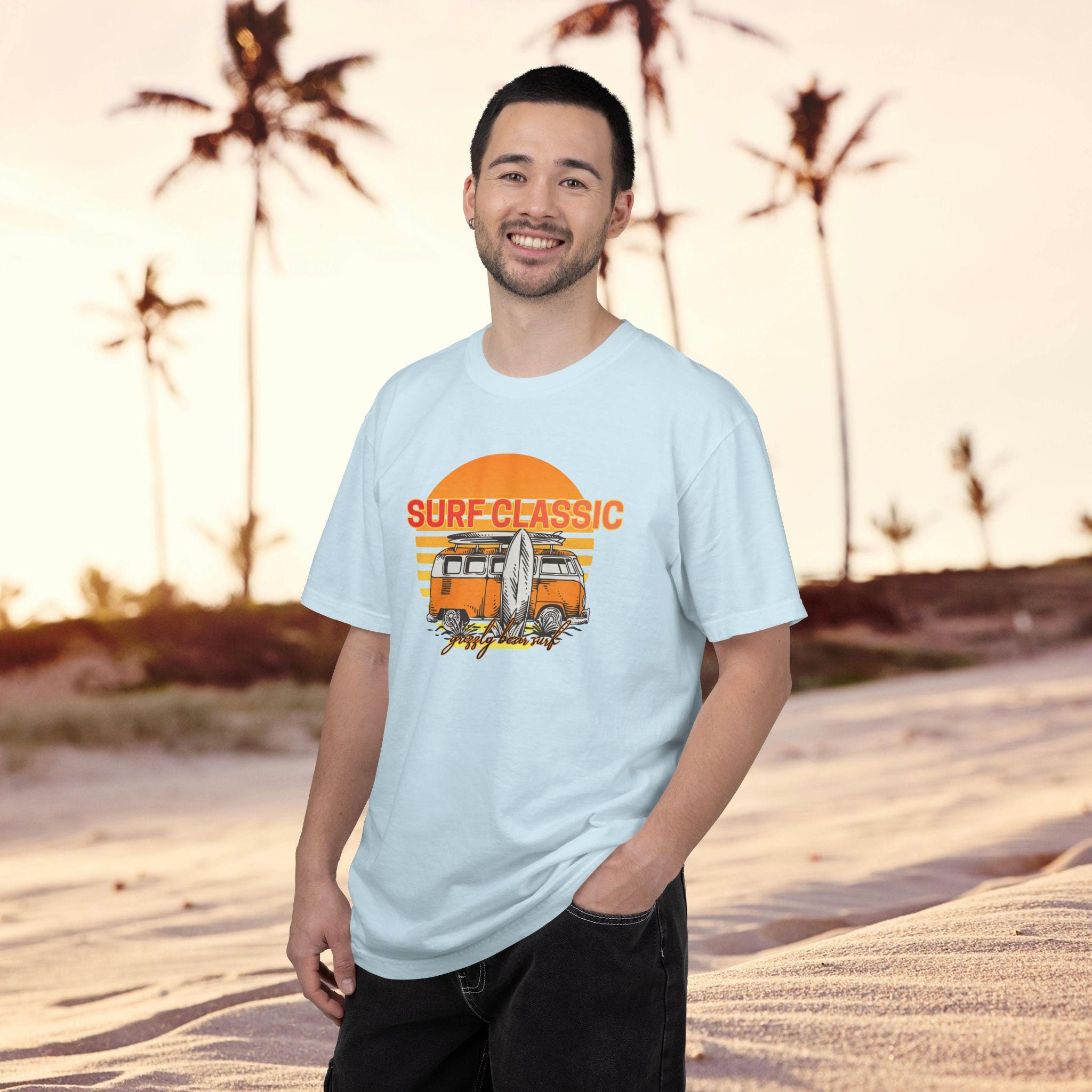 Long, slow summer days and foggy winter mornings — this classic surf tee settles in like a familiar board under your arm. The garment-dyed, heavyweight cotton softens with wear and carries a lived-in color that makes every crease feel like a remembered wave.